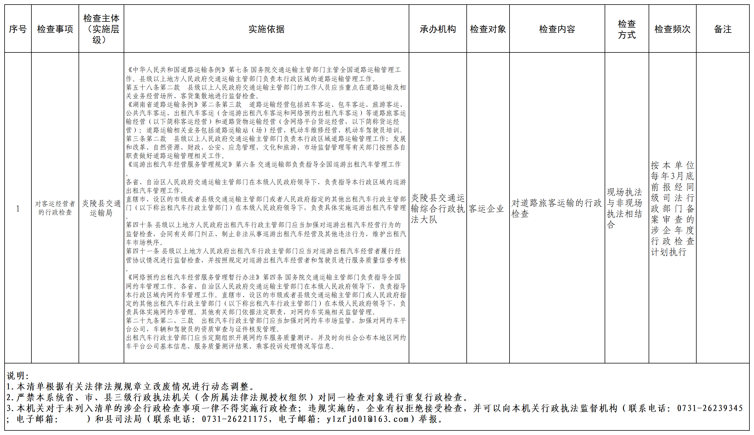 表格下载:炎陵县交通运输局涉企行政检查事项目录样表