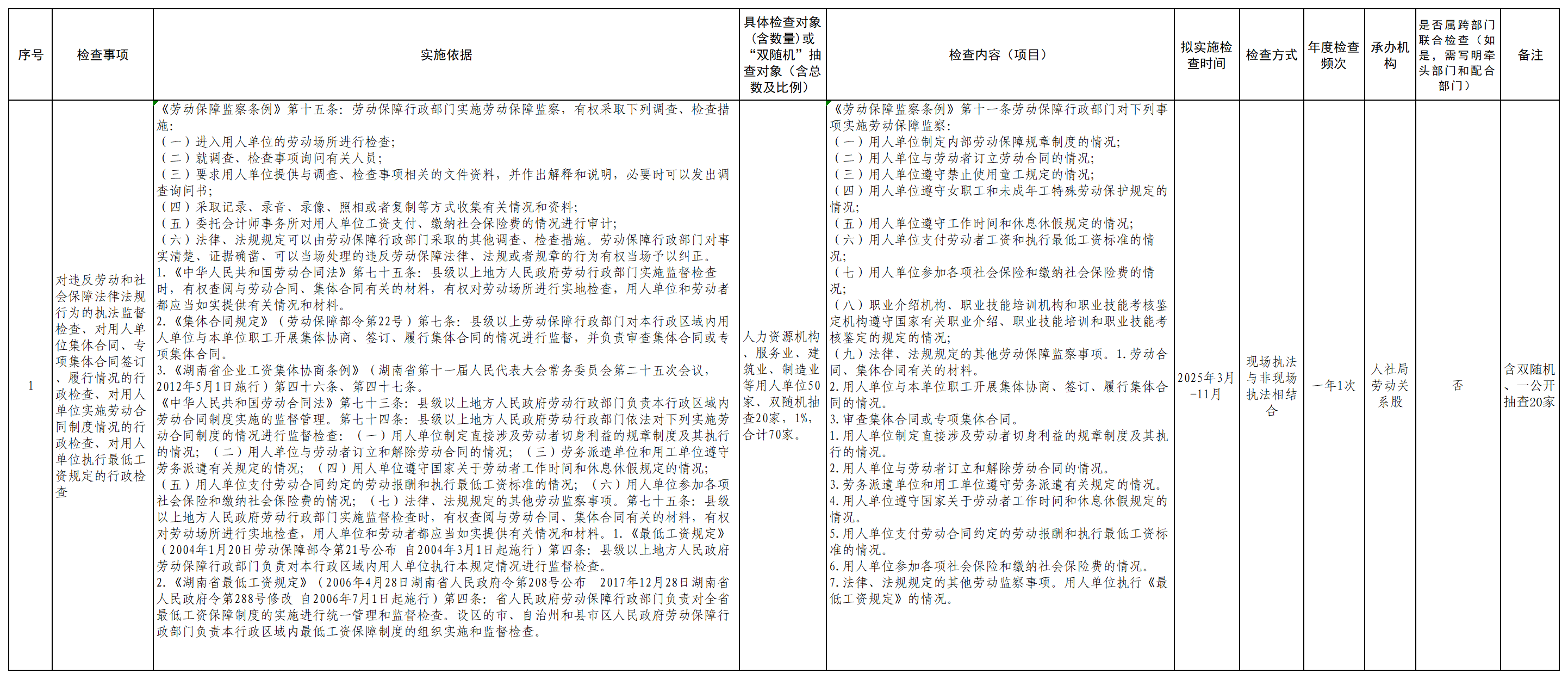 炎陵县人力资源和社会保障局2025年度涉企行政检查计划